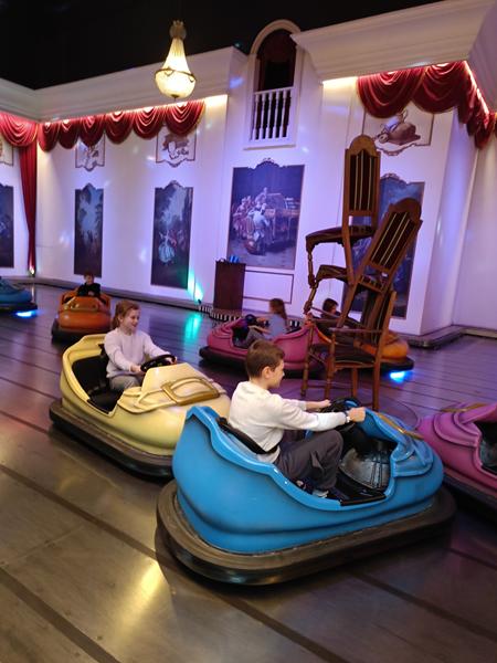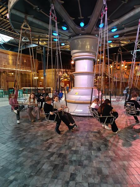 Nie zabrakło również czasu na zabawę – dzieci korzystały z roller coasterów, karuzel oraz innych atrakcji parku. Dużym zainteresowaniem cieszył się także labirynt luster, w którym uczniowie z entuzjazmem szukali wyjścia.