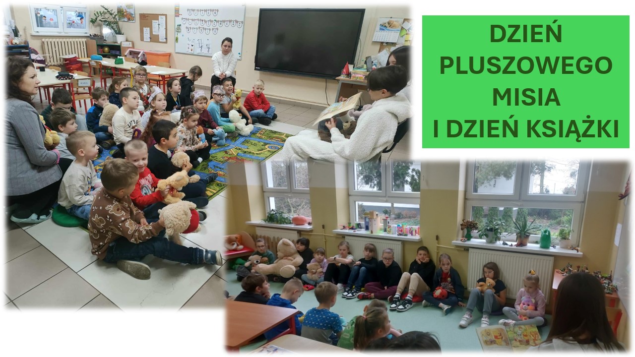 We wtorek przypadł dzień książki i pluszowego misia. Najmłodsze dzieci przynisoły ze sobą do szkoły swoje ulubione pluszaki, które towarzyszyły im podczas lekcji. Uczniowie ze starszzych klas czytali swoim najmłodszym kolegom i koleżankom opowiadanie o Kubusiu Puchatku i jego przyjacielach.